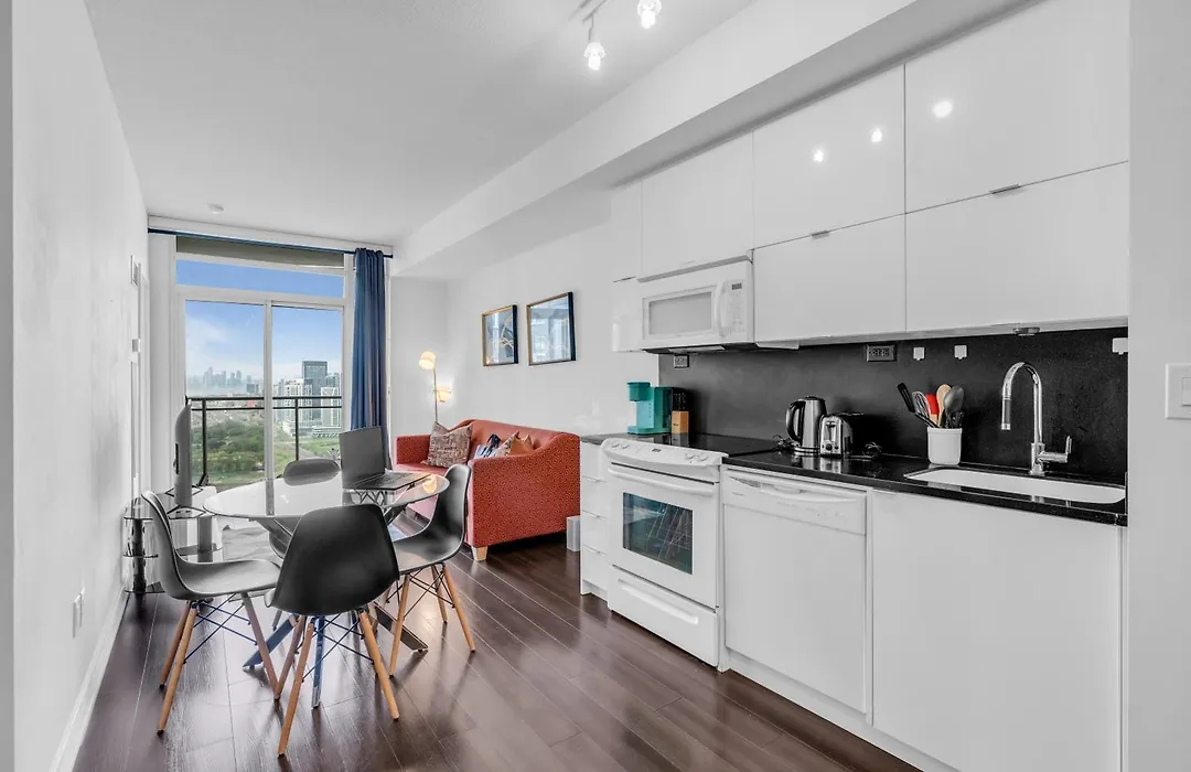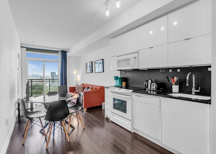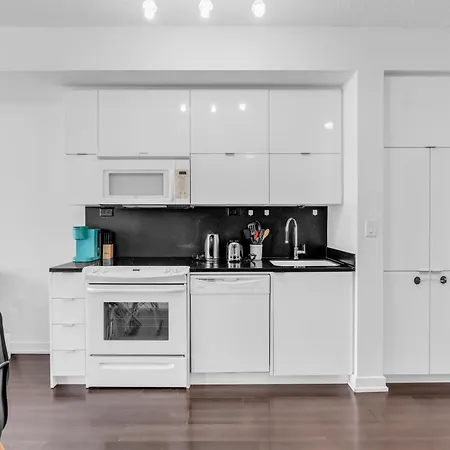 Het appartement is in het hartje van Toronto, op korte afstand van Fort York gesitueerd. Het Sony Centrum voor uitvoerende kunst is binnen 25 minuten lopen van het 1-slaapkamer appartement en de luchthaven Billy Bishop is op minder dan 5 minuten rijden.